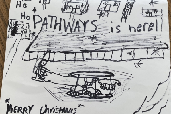 "To Pathways, for making me feel festive every year. I plan to visit even after I graduate and help out in the future. I have so many great memories here and I have met great people. Hopefully Pathways will stay long enough for my kids to learn there. Most of my friends know how great this place is and will continue to be." –Kate