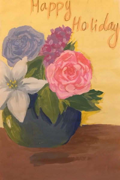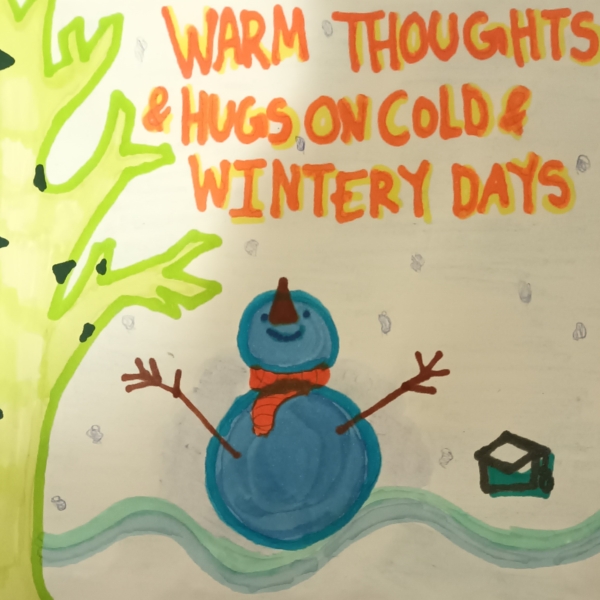 "I just want to show my appreciation to Pathways for their care and programs helping us students grow and learn more. My school doesn’t have much art programs so I’m always very exited when the holiday card competition comes around. It helps me evolve my art skills and I had a lot of fun learning new things to draw and different techniques. I learned how to blend the colours a lot more then last year so I appreciate you for this opportunity. It means a lot being able to show my art to more people other than my sisters lol. Have a good holiday!! (well soon)" –Sally