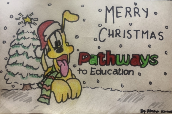 "Wishing the Pathways Program a Merry Christmas. This Christmas card is sent to the Pathways Program in appreciation of their kindness, patience, and love. One of my favourite spots to go to complete schoolwork or hang out with friends is Pathways. The Pathways Program has relieved my stress and made school much simpler. I sincerely appreciate that the Pathways workers are always willing to lend a hand and make everyone feel comfortable." –Anisha