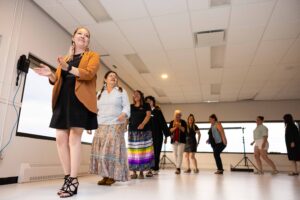 The Pathways Program Partner in Mashteuiatsh is Puakuteu, comité de femmes de Mashteuiatsh. Their space is often the first stop for families in need of support, who get to learn about the Pathways Program while accessing other resources. Program staff like Paméla Duciaume have a unique knowledge of local challenges, like planning for life after high school as an Indigenous person. “It can be a big identity shock for an Indigenous person moving to an urban setting to go to school,” Paméla explains. “We guide students through their options, like post-secondary institutions we have relationships with, or local CEGEP programs built around Indigenous knowledge. I went to one of those programs myself and they are very popular with the students here.”