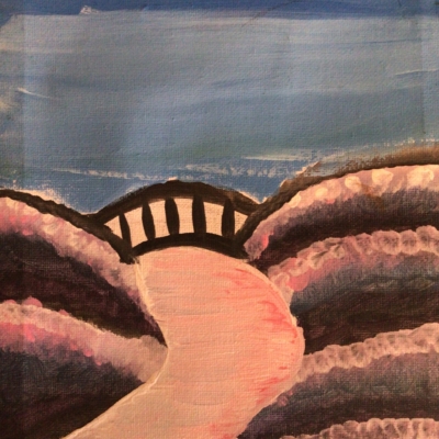 "This piece of artwork represents a very snowy vibe. I thought a snow globe would be a cool idea to greet people into the snowy, winter season. It has a representation of the holidays as there is the santa and reindeer in the moon but it provides a nice greeting to whoever this is given to. There are many trees (black and white) that have a nice contrast in a snowfall in the night. The idea of having the title pathways on the snow globe is for the remembrance of having pathways greeting you. People usually get snow globes as a souvenir to keep, so in a way this is a souvenir from pathways." –Simra