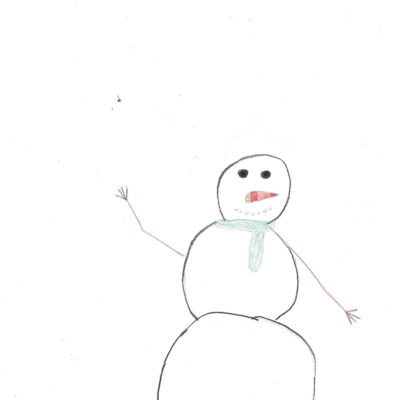 "Vive le temps des fêtes! Vive le temps des fêtes! Vive le vent d’hiver! Boules de neige et magie du jour de l’an! Le temps des fêtes est pour moi le plus beau moment de l’année. Nous prenons du temps en famille. Chaque instant que nous prenons pour nous réunir m’apporte de la joie et du bonheur. J’adore recevoir des cadeaux. J’ai toujours l’impression qu’un bonhomme de neige prend vie à quelques pas de la maison. C’est ce que j’ai dessiné!" –Thomas