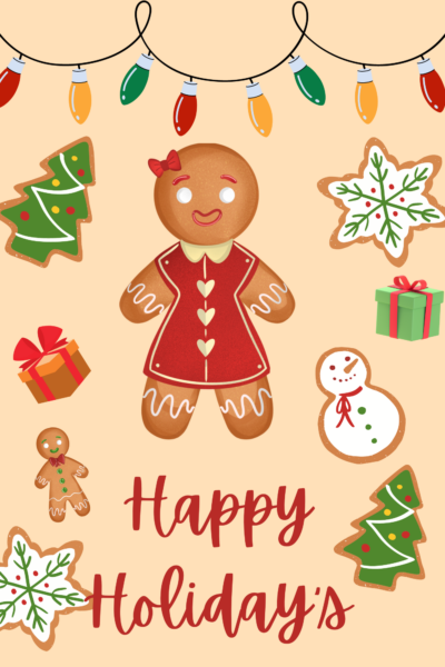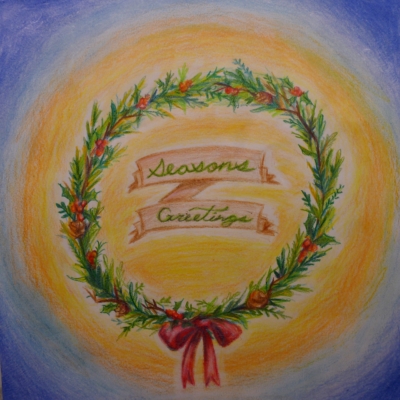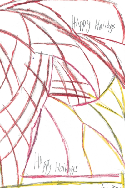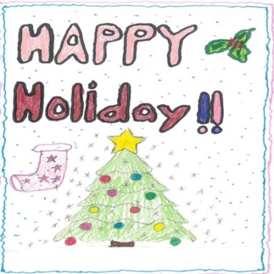 "For this Christmas card, I've written "Merry Holidays" which is something that is a mix between "Merry Christmas, and Happy Holidays". The reason I did this, is because my elderly grandfather often gets mixed up between saying Merry Christmas, and Happy Holidays, which turned it into an inside joke for my family. I've drawn lights underneath to represent lights that you would place on your house during the Holiday Season." –Zariah