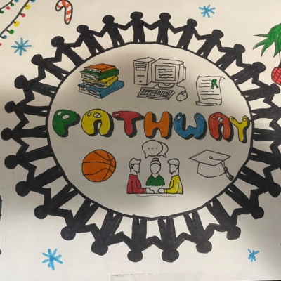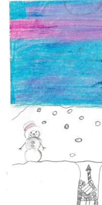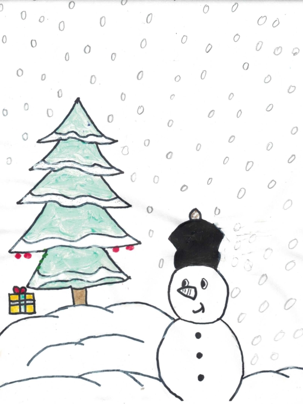 "This drawing signifies pathways and the holidays, the snowman and Christmas tress signifies Christmas and the snow while the school represents pathways and what they are. I drew a school because pathways is all about learning and helping those who require assistance with academic success. The last important thing I drew was the Canadian flag representing which nation pathways hails from and currently operates in." –Mohamad