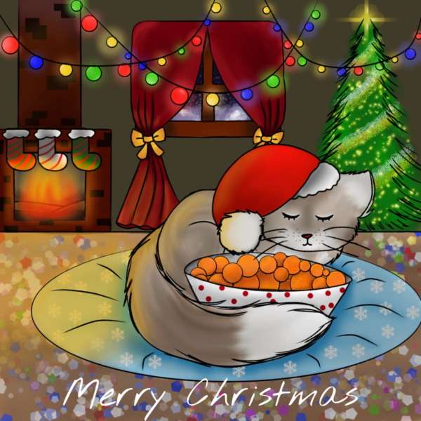 "It's just a simple and fun drawing made to create a little fun holiday spirit. It has all the components that define Christmas such as cookies, candy, a Christmas tree and presents. All of these drawings were made to be fun sized so they can look more wholesome and lastly the character itself is just someone you would expect that is celebrating and giving out the holiday spirit." –Hadi