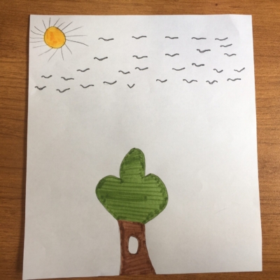 "My work is a christmas tree because I like christmas and it makes me happy. Also every time I think about Christmas it reminds me of trees. I put the christmas tree outside because it look's cool when it is snowing outside on a christmas tree. I chose to say happy holidays instead of merry christmas because not everyone celebrates christmas." –Zabiolah