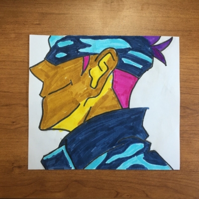 "The flower in this artwork represent me and my friends . The thorns represents the hardships that we went and are still going through. For example: Covid. During Covid, we were separated from each other, not able to go out, and have fun together. But through out all of this hardships, we were able to bloom and the become the people that we are today." –Atsalia